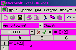 Операторы - обозначения математических операций, совершаемых над операндами. Например, в формуле =А4 * (b+2) ссылка А4 и выражение b+2 являются операндами, а знак умножения " * " - оператором. В свою очередь, операнд b+2 состоит из операндов b (имя переменной), 2 (число) и оператора сложения " + ". Между частями формулы для удобочитаемости можно добавлять пробелы. Для группирования операндов, как и в математике, служат круглые скобки.