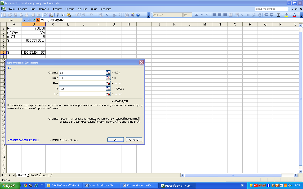 - обучить использованию финансовой функции MS Excel для расчета будущей стоимости, функция БС;