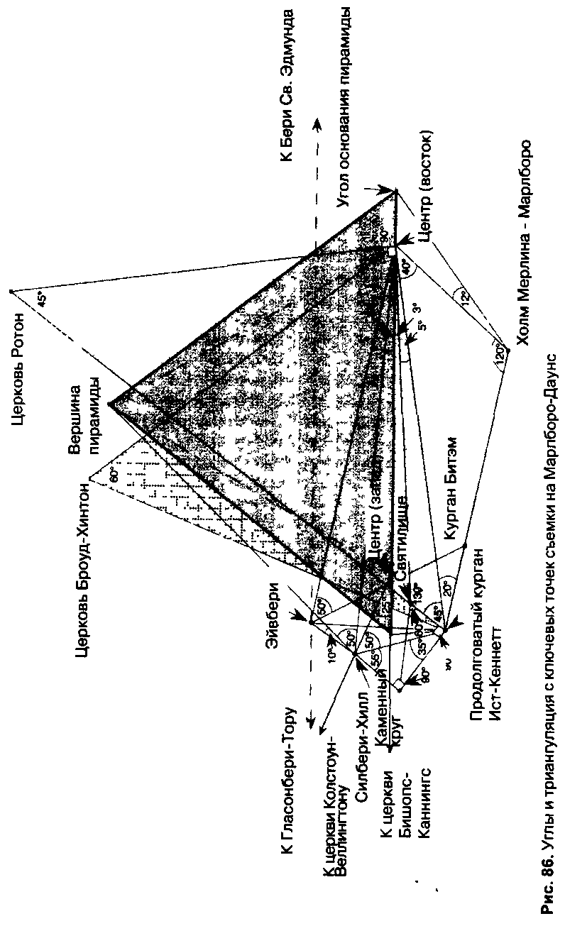 ризуемым словом' «Эврика» Теперь всему начало нахо диться свое место Будь то линия визирования между Бэр-роубридж-Мамп и Гластонбери-Тором, совпадающая с леи Св Михаила, или местоположение кургана Вест-Кен-нетта Как бы то ни было, но как только выбор выпал на курган Вест-Кеннетт и была установлена ориентация, необходимо было установить еще одну ключевую точку съемки, ибо любая съемка нуждается в двух опорных точ ках Такая точка съемки должна была находиться под пря мыми углами к предложенной ориентации и достаточно близко для того, чтобы можно было точно измерить рас стояние В этом-то и заключается гениальность связи между Силбери-Хиллом и курганом Вест-Кеннеттом
