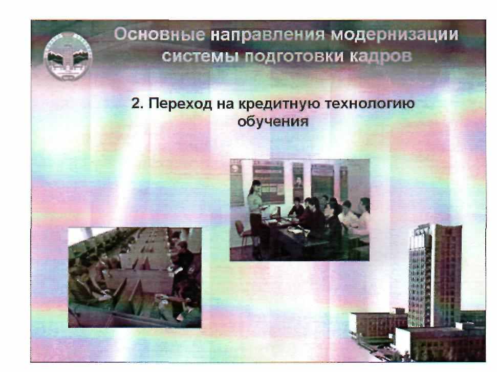 Второе ключевое направление модернизации системы высшего образования Казахстана - переход на кредитную технологию обучения.