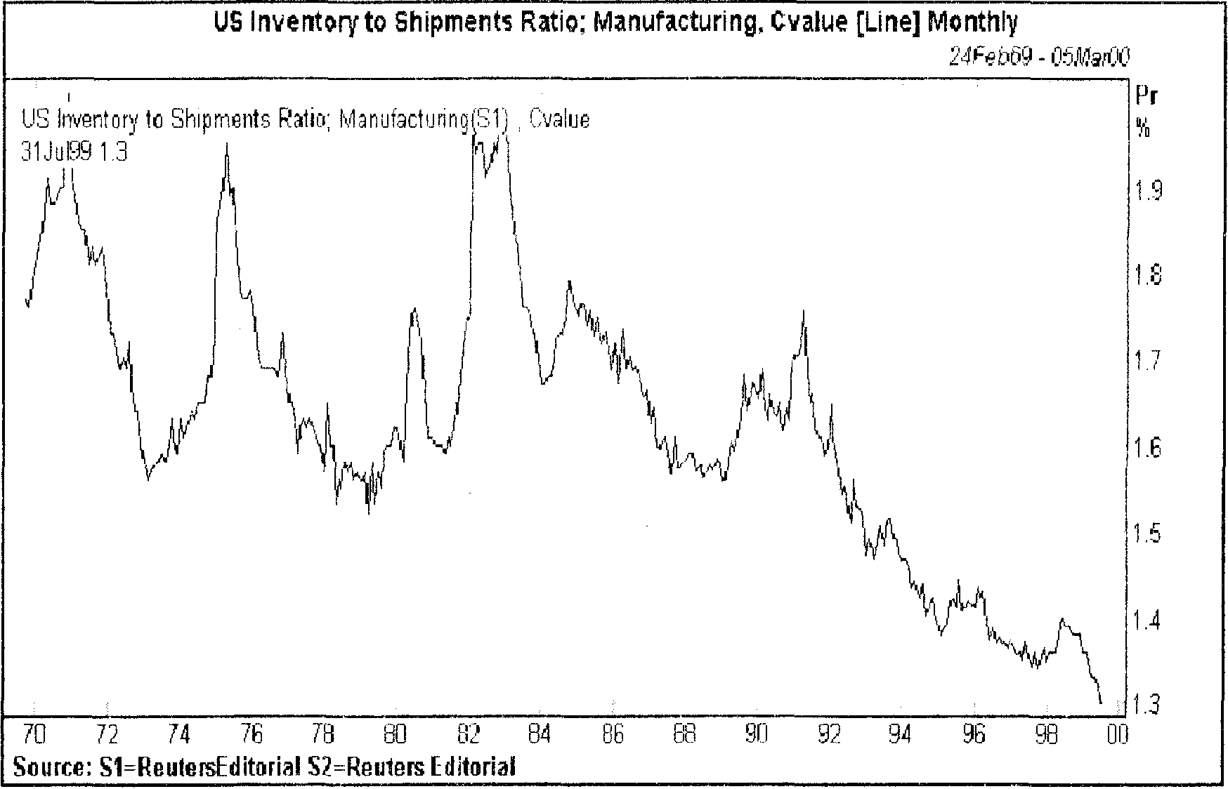 Рис. 9.5. Показатель отношения запасов к реализации, США