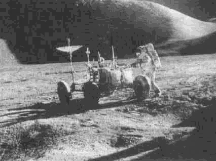 Фото 42. Пейзаж, на фоне которого передвигался лунный вездеход («Ровер»), был практически трудно различим и смахивал на бутафорское оформление7