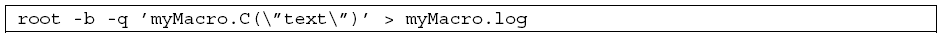 Следующая строчка запустит на выполнение сценарий myMacro.C и выведет консоль в файл myMacro.log.