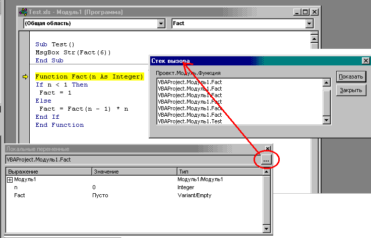 Что происходит при вызове рекурсивных процедур можно увидеть выполняя программу по шагам ( F8) и просматривая окно локальных переменных или сразу стек вызовов из меню Вид.