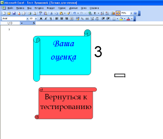 - на последнем – две фигуры «Ваша оценка» и «Вернуться в начало теста?»;