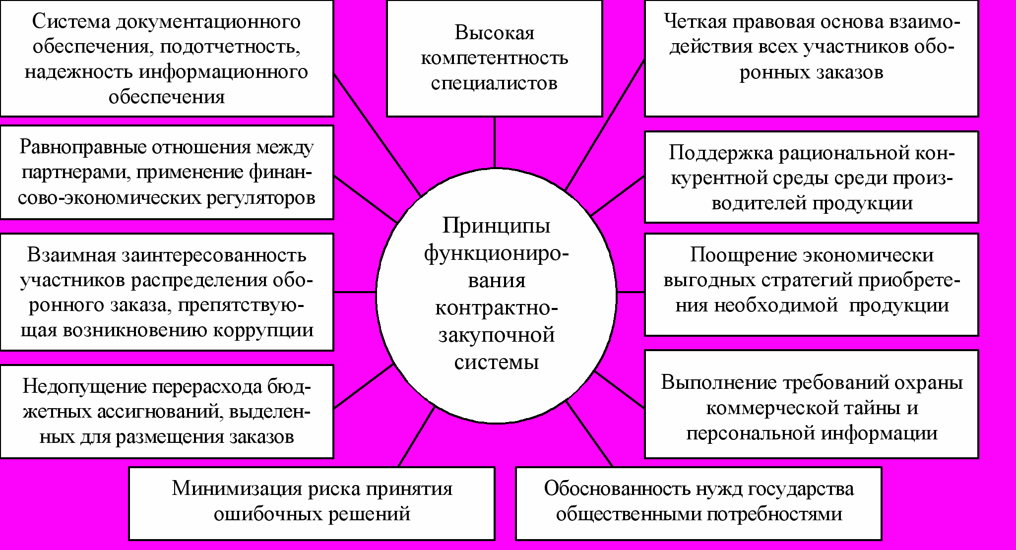 Решению проблем активизации промышленности, включая оборонные отрасли, и финансово-экономического регулирования взаимоотношений, возникающих между государством (в лице заказчиков) и производителями продукции, в которой оно нуждается, должно содействовать становление федеральной контрактно-закупочной системы, базирующейся на развитии контрактных отношений между заказчиками и исполнителями на конкурентной основе. На наш взгляд, вследствие разнообразия функций, выполняемых государством в обществе, и существенных особенностей продукции для нужд государства, федеральная контрактная система не может быть единой. Целесообразно, по нашему мнению, иметь несколько типовых организационно-функциональных схем этой системы, разработанных на основе общих принципов. На базе этих схем должны создаваться и модернизироваться контрактно-закупочные системы, каждая из которых охватывает группы ведомств-заказчиков (межведомственная) или заказчиков одного ведомства, образуя единую федеральную систему.