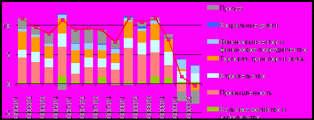 — Вклады отраслей в производство ВВП, (г./г., п.п)