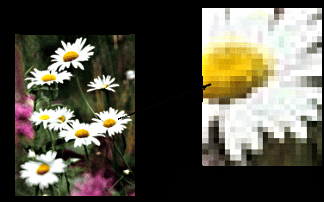 В файле, содержащем растровую графику, хранится информация о цвете каждого пиксела данного изображения. Чем меньше прямоугольники, на которые разбивается изображение, тем больше разрешение (resolution), то есть, тем более мелкие детали можно закодировать в таком графическом файле.