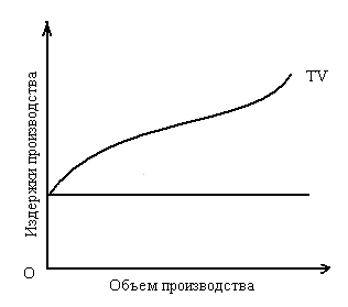 К переменным издержкам (VC – variable costs) относятся те затраты, которые изменяются вместе с изменением объемов выпускаемой продукции. К ним относятся затраты, связанные с приобретением сырья, материалов, оплатой труда. Если предприятие увеличивает объемы выпускаемой продукции, то для этого необходимо больше закупить сырья и материалов, выплатить большую сумму заработной платы наемным рабочим. Зависимость изменений переменных издержек в ответ на изменение объема выпуска в графической форме можно представить следующим образом (Рис. 3. Из книги Экономическая теория. Учебник. / Под ред. И.П.Николаевой. – М.: «Проспект», 2000. – с. 102).