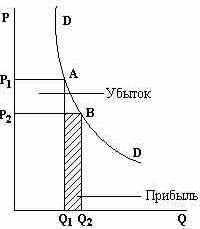 Рис. 1 Цена и предельный доход в условиях чистой монополии