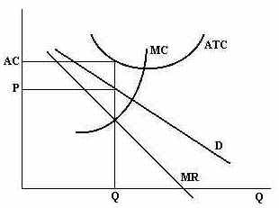 Рис. 3 Максимизирующее прибыль положение фирмы в условиях чистой монополии.