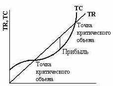 QВ критических точках валовые издержки равны валовому доходу. Любое производство за пределами этих точек повлечет за собой убытки. Любое производство в пределах этих точек критического объема принесет экономическую прибыль.