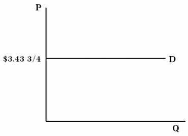 | У нас, как говорят, свободная страна, и предприниматели обычно могут свободно назначать свои цены. Корпорация "Ю. Эс. Экс." (бывшая "Юнайтед Стайте Стил"), печатая свои ценовые прейскуранты, действует в значительной степени по своему усмотрению, и канзасский фермер, выращивающий пшеницу, может ничуть не опасаться судебного преследования, если он решит предложить свой урожай по цене 5 долл. за бушель. Но здесь есть, очевидно, важное различие, которое помогает объяснить, почему "Ю. Эс. Экс." нанимает людей, чтобы решить, какие цены следует установить, а фермеры этого не делают. Тем не менее мы утверждаем, что это различие носит количественный, а не качественный характер. Сперва рассмотрим ситуацию с фермером, выращивающим пшеницу. Если он обратится к финансовым рубрикам в газетах или в полдень прослушает радиосообщения о состоянии дел на рынке, то выяснит, что сорт номер 2 стандартной твердой канзасской пшеницы стоил с утра 3,43 долл. 3/4 цента за бушель. Эта новость может разочаровать его или привести в восторг, но он почти ничего не может сделать, чтобы изменить ситуацию. Если он признает цену замечательной и сразу же отгрузит для продажи весь свой урожай, по гладкой поверхности рынка пробежит едва заметная рябь. Даже если этот фермер - один из крупнейших производителей пшеницы в штате, на его долю приходится все же такая небольшая часть общего объема продаж и покупок пшеницы, что он не может повлиять на цену. Продаст ли он весь свой урожай или только его половину, разница в цене, которая установится к вечеру, вряд ли составит и 1/4 цента. | Описание спроса, с которым сталкивается каждый торгующий пшеницей фермер: | |