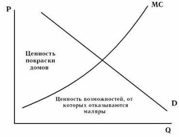 Если теперь цена установится на уровне 6 долл. в час, так что за лето из рук в руки перейдет 6000 часов блага, сердца многих экономистов забьются от радости. Почему? Потому что при данных кривых спроса и предложения по цене 6 долл. не производится ни одной единицы блага, для которого предельная стоимость альтернативы, представленная кривой предложения, превосходила бы предельную выгоду от ее потребления, представленную кривой спроса. Более того, производится каждая единица блага, у которой предельная выгода превосходит предельные затраты. А что может быть лучше этого? Традиционно экономисты даже называли такое состояние дел оптимальным размещением ресурсов (optimal allocation of resources). Оптимальный - значит наилучший, что, несомненно, является слишком сильной похвалой; но давайте присмотримся внимательнее, чтобы понять точнее, что здесь происходит.