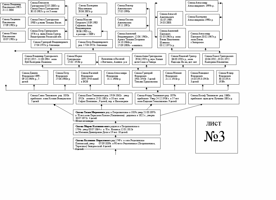 Третий лист родословного древа людей с фамилией Сиваш, составлен17 января 2007г в г