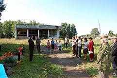| 12 августа 2009 года в деревне Пушкино состоялась торжественная церемония открытия памятника погибшим воинам после его реконструкции. Прошёл небольшой митинг, на котором собрались школьники, пожилые люди, представители администрации колхоза и сельского округа. У памятника посадили розы, пионы, лилии, возложили цветы к подножию. Этот памятник был сооружён на месте демонтированного старого, который со временем начал разрушаться. Прежний монумент был установлен в 1980 году к годовщине Дня Победы. Он представлял собой фигуру стоящего на постаменте солдата с непокрытой головой, прижимающего к себе знамя и автомат. Делал его скульптор Калинин. С трёх сторон постамента были укреплены листы алюминия с чеканкой: фамилиями и инициалами солдат, погибших на фронтах Великой Отечественной войны. Детсадовцы у прежнего памятника | ![]() Митинг на открытии ![]() Новый памятник |