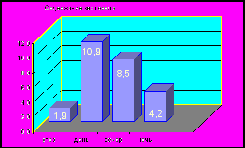 Рис. 2 - Среднее содержание кислорода в водах нерестового водоёма (ЕЭХРВР) в течение суток, мг/л