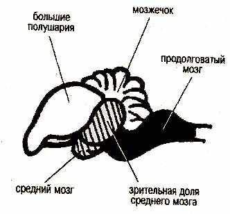 2.6 . Нервная система птиц по сравнению с нервной системой пресмыкающихся значительно усложнилась. Высокое развитие центральной нервной системы обусловлено более сложное поведение птиц. Оно проявляется в различных формах заботы о потомстве (гнездостроение, откладка и насиживание яиц, обогревание птенцов, их кормление), в сезонных перемещениях, в развитии звуковой сигнализации. Представлена головным, спинным мозгом и отходящими нервами. Головной мозг заключен в объемную мозговую коробку. Большие полушария переднего мозга крупных размеров и образованы полосатыми телами. Средний мозг имеет развитые зрительные доли. Мозжечок обеспечивает сохранение равновесия и точную координацию птицы во время полета. Обонятельные доли развиты слабо. Черепно-мозговых нервов 12 пар.