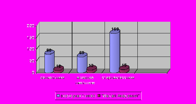 1. Конкурс исследовательских проектов «Я исследователь» приняло участие 65 школьника, из них от Малой Академии 5 проектов эколого-биологической направленности. (Бездольная Т.Е.; Васильева С.В; Мазурова Н.В. Растягаева Н.) Хотя 4 проекта заняли призовые места, следует отметить, выбранные темы для исследования несколько устарели.