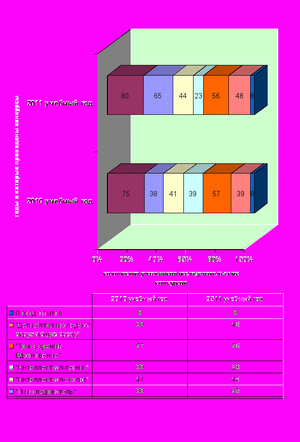 Рис.7. Диаграмма количественного состава участников конкурсов исследовательских проектов за 2010-2011 годы