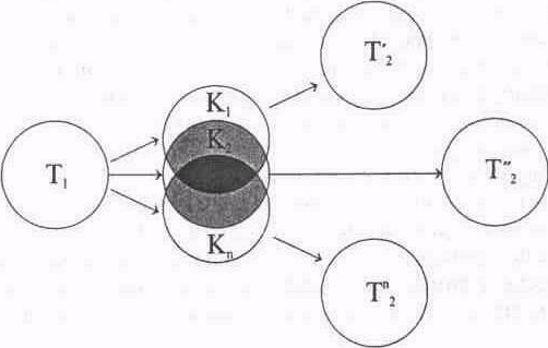 Схема художественного перевода показывает, что передающий и принимающий пользуются различными кодами К1 и К2, пересекающимися, но не идентичными. В случае обратного перевода это даст не исходный, а некоторый третий текст Т3. Еще ближе к реальному процессу циркуляции сообщений случай, когда перед передающим оказывается не один код, а некоторое множественное пространство кодов k1, k2, ..., kn, каждый из которых — сложное иерархическое устройство и допускает порождение некоторого множества текстов, в равной мере ему соответствующих. Асимметрическая направленность, постоянная потребность выбора делают в этом случае перевод актом порождения новой информации и реализуют творческую функцию как языка, так и текста.