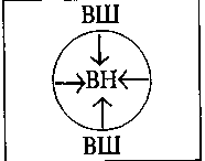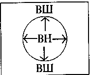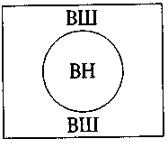 6.1.1. Дано двумерное (плоское) пространство. Оно разделено границей на две части, причем в одной из них оказывается ограниченное, а в другой — безграничное количество точек. Таким образом, что обе они вместе составляют универсальное множество. Из этого положения вытекает, что граница в данном случае должна быть замкнутой кривой, гомеоморфной окружности. Тогда граница делит плоскость на две области — внешнюю (ВШ) и внутреннюю (ВН) (рис. 1).