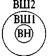 6.2. Усложнения модели возникают при взаимном наложении оппозиции ВН <--> ВШ, где оба члена принадлежат земному миру, а граница между ними проходит внутри Э, и оппозиции Э <--> Т. Получается схема (рис. 4), где ВН и ВШ1 составляют пространство Э («земное»), ВШ2 — Т («потустороннее»).