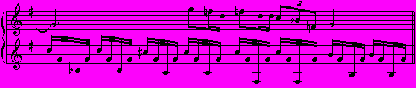 Еще большее усложнение ладового сплава возникает, когда в орбиту ассимилируемых явлений попадают и блюзовые ладо-интонемы. И здесь мы как бы завершаем анализ, возвращаясь к начальному разговору о блюзовых истоках рока. Но возвращаемся на новом уровне, так как перед нами открывается совершенно уникальная картина многопластовой ладовой полифонии. Например, функциональный оборот, имеющий явно классическую природу, деформируется под воздействием модального принципа, и все это цементирует комплекс блюзовых интонаций. А так как блюзовые интонации очень легко объединяются с натурально-ладовыми - об этом уже говорилось - то возникают удивительно интересные сплавы. Эти сплавы - бесспорный признак высокого качества музыки, так как ладовое разнообразие и богатство форм неотъемлемы от высокого уровня музыкального интеллекта. Бедная в ладовом отношении музыка как правило бедна и интонационно, и следовательно, содержательно. Все взаимодействует в нерасторжимом единстве, и в образцах тупого и примитивного рока нет смысла искать многослойную полифонию ладовых форм или же намеки на ладовую драматургию.