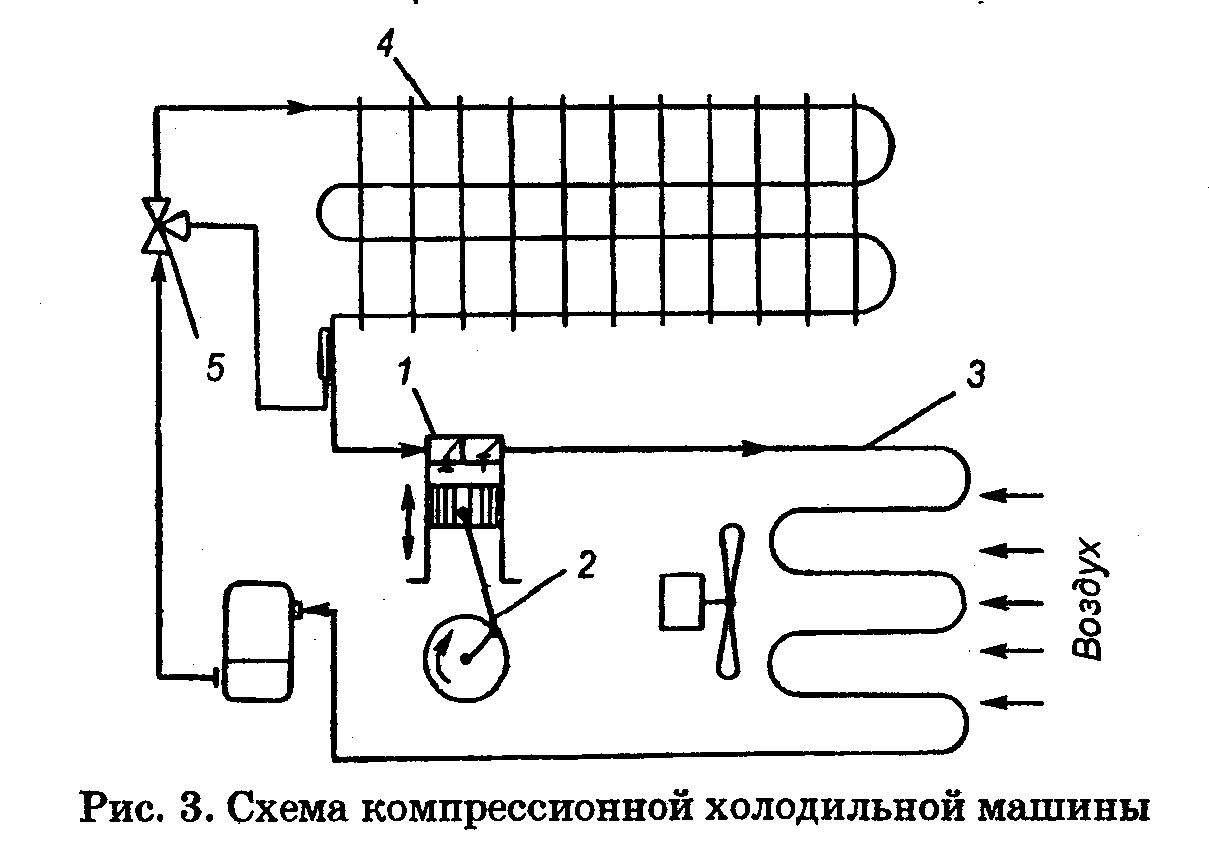 Работа холодильных машин основана на принципe обратного процесса, т. е. процесса, при котором тепло переносится с низкого температурного уровня на более высокий. От охлаждаемого тела, например, воздуха охлаждаемого объема, имеющего температуру ниже, чем температура окружающей среды, рабочее вещество холодильной машины отнимает тепло и передает его в окружающую среду, которая имеет более высокую температуру.