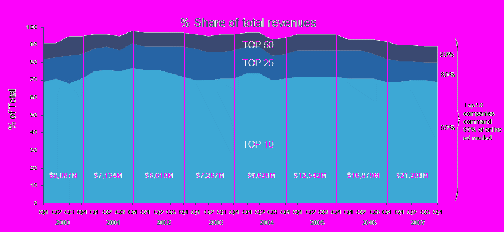 ![]() Рисунок 2.2. Доли отдельных секторов рынка Интернет-рекламы в США в 2006-2007 гг. Виды интернет-рекламы в СШАСреди основных видов онлайновой рекламы выделяются реклама потребительских товаров (55% от общего объёма онлайн-рекламы), финансовая реклама – второй по величине вид онлайн-рекламы - на нёё приходилось 15% или $ 3,2 млрд. В 2007 году данный показатель снизился по сравнению с 2006 году на 1%. На третьем месте – реклама компьютеров – 11% или $ 2,3 млрд., на четвертом – реклама телекоммуникационных компаний– 8% или $1,7 млрд., на пятом –media– 6% или $ 1,3 млрд. ![]() Рисунок 2.3. Виды Интернет-рекламы в США в 2006-2007 гг. Реклама потребительских товаров остается самой большой категорией среди всех видов онлайновой рекламы. На нее в 2007 году приходилось 55% (или $11,6 млрд.) всей прибыли ( в 2006 году – 52%). Внутри этой категории 45% прибыли приходится на розничные магазины, 21% - на автомобильную отрасль, 13% - на индустрию отдыха, 9% - на индустрию развлечений, и, наконец, 8% - на собственно потребительские товары. ![]() Рисунок 2.4. Сегменты Интернет-рекламы в США в 2006-2007 гг. Доли интернет - компаний на рынке онлайн-рекламы в США.Сектор онлайновой рекламы остается низкоконкурентным. По данным за 4-й квартал 2007 года, на 10 ведущих компаний, занимающихся размещением рекламы (Google, Yahoo, Microsoft, AOL, IAC, News Corp.), приходилось 69% всех доходов в этой отрасли, на 25 ведущих компаний - 80%, а на 50 компаний - 89% всей прибыли. Таблица 2.3. Доли ведущих компаний, занимающихся размещением рекламы в США