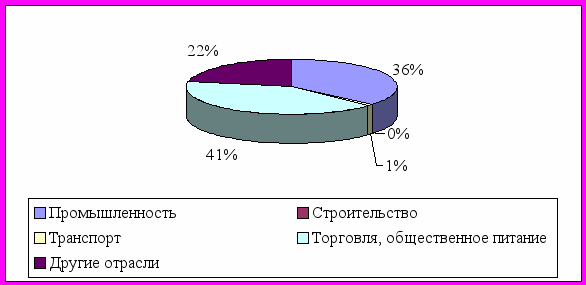 Как видно из диаграммы, ведущую роль играет кредитование торговли и общественного питания, на втором месте находится промышленность, что полностью соответствует распределению малых предприятий по отраслям экономики. На третьем месте находится строительство, в то время как в общей структуре кредитного портфеля доля строительства минимальна. Данное положение свидетельствует о том, что кредит на строительство получила организация, относящаяся к малому бизнесу, хотя, как правило, строительством занимаются крупные компании.