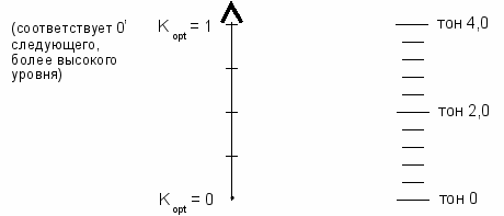 По этой шкале, основной диапазон эмоционально-психических тонов человека (своего рода уровней сознательного4) колеблется от 0 до 4, включая множество полутонов и промежуточных состояний (0,1, 0,2 и т.д.). Есть также области выше 4 – они имеют отношение к человеческому духу, и области, «зашкаливающие» за 0, – они характеризуют людей-зомби, вообще не принимающих самостоятельные решения. С математической точки зрения, мы можем увязать эту шкалу тонов с неким коэффициентом оптимальности системы (Kopt) для тех или иных условий, имея в виду, что коэффициент отражает уровни качества, то есть изменение Kopt означает изменение набора качественных характеристик системы (или объекта, если объект – система):