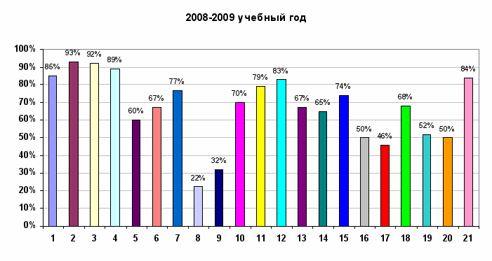 Реализация пунктов анкеты ![]() ВЫВОДЫРОСТ: п.8 использование дидактических материалов с 23% до 50% , т.е. в 2 раза; п.16 учёт индивидуальных особенностей учащихся с 50% до 63%; п.14 речевая активность учащихся с 70% до 82%; п.9 разноуровневые домашние задания с 33% до 40%. СТАБИЛЬНЫЕ ПОКАЗАТЕЛИ: п. 1,2, 3, 4, 5, 9. 11. 13 СНИЖЕНИЕ: п.6 связь с жизнью; п.7 раздаточные материалы; п.10 стимулирование ответов учащихся; п. 12 поощрение учащихся; п.15 своевременное окончание урока; п.17 исследовательские компетенции; п.18 мыслительные компетенции; п.19 общекультурные компетенции; п.20 ценностно-смысловые компетенции; п.21 информационно-коммуникационные компетентности. Западает компетентностный подход. Отчет медиацентра о проделанной работе за 2009-10 учебный год. 1. Еженедельно по понедельникам в медиацентре проводятся педагогические совещания по разным вопросам с использованием ИД проектора. 2. Осуществляется постоянная помощь учителям предметникам и учащимся школы в вопросах использования ПК и Интернета. 3. Оказывается помощь учителям и учащимся в подготовке к занятиям и внеклассным мероприятиям: поиск необходимых тем в Интернет, запись материала на электронные носители, помощь в оформлении электронных материалов, сканирование, печать. 4. Предоставляется оборудование (экран, проектор, компьютер) учителям для проведения уроков, классных часов и к подготовке внеклассных мероприятий. 6. Учителями предметниками на базе ресурсов медиацентра было проведено 210 уроков и 14внеклассных мероприятий. Психологами из психологического центра «Ариадна» был проведен просмотр видео фильма в 7-9 классах о вреде наркотиков и алкоголя. 7. Ведется фото и видеосъемка уроков, классных часов, внеклассных мероприятий, обработка и оформление полученной информации, сохранение ее в базе данных школы. 8. Медиацентром подготовлены и сохранены на CD-дисках видеофильмы и презентации уроков, мероприятий, педсоветов. 9. Проводится техническое сопровождение оборудования медиацентра. За отчетный период дважды осуществлялся ремонт компьютеров, ремонт принтера и сканера, заправка картриджей, покупка расходных материалов. 10. Медиацентр осуществляет мультимедийное и информационное сопровождение всех проводимых школьных мероприятий, а также мероприятий районного уровня. 11. Медиацентр активно сотрудничает с администрацией школы в подготовке и распечатке документов. 12. Ведется каталог информационных ресурсов медиацентра, создается база данных на учащихся школы. 13. Функционирует пост электронной почты. 14. Ежемясячно обнавляются данные на сайте школы. 15. В течение года на базе медиацентра работала учебная площадка для педагогов по работе с ПК и использованием ИКТ на уроках, обучение прошли: Машкина Н. И., Василенко В. А., Ульянова Н. А., Мазурик Н. В., Стяжкина О. П. 16. На осенних и зимних, летних каникулах, медиацентром, с целью организации досуга учащихся был организован показ мультфильмов. 17. Ведется документация (см.папка «Медиаценр») 18. Педколлектив был ознакомлен со следующими образовательными Интернет ресурсами: · Тестирование он-лайн - est.ru/index.php?section=6 · ЭОР - u · Единая коллекция цифровых образовательных ресурсов – llection.edu.ru/ · Единое окно - org/ · Сеть творческих учителей - br /> · Фестиваль педагогических идей от газеты «1 сентября» - 1september.ru/ Задачи на следующий учебный год: - создать школьную локальную сеть с вых