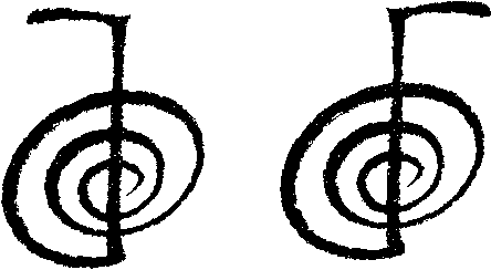 Хон-Ша-Зе-Шо-Нэн также является механизмом передачи исцеления на расстояние при дистанционной работе (более подробно об этом говорится в следующей главе). Перевод названия Хон-Ша-Зе-Шо-Нэн - «Нет прошлого, нет настоящего, нет будущего» - дает нам ключ к его разнообразным способам применения. Когда я изучала Рейки II, мне сказали, что значение Хон-Ша-Зе-Шо-Нэн определяется как «открой книгу жизни и читай сейчас». Еще одно значение этого символа является буддийским приветствием, которое звучит как: «Богиня во мне приветствует Богиню в тебе». Но каковы бы ни были определения символа, Хон-Ша-Зе-Шо-Нэн исцеляет прошлое, настоящее и будущее в этой жизни и прошлых жизнях. Использование двойного символа открывает вход в будущее. При визуализации одна фигура появляется почти непосредственно позади другой.