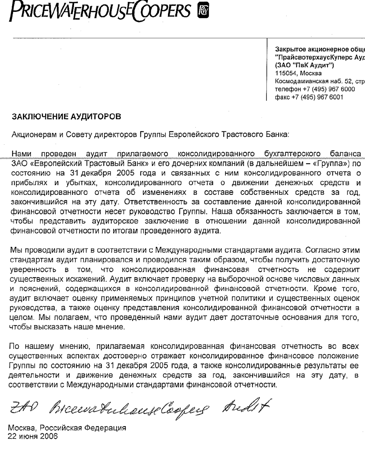 Группа Европейского Трастового Банка Консолидированная финансовая отчет