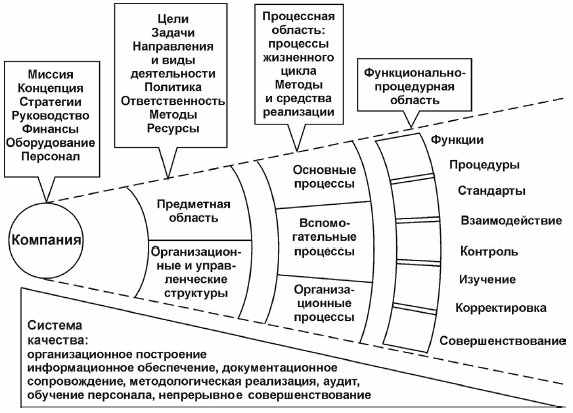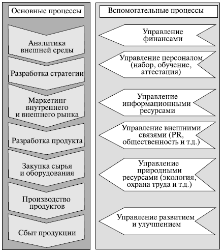 - основные, вспомогательные и управленческие процессы, описывающие, КАК предприятие выполняет свои бизнес-функции;