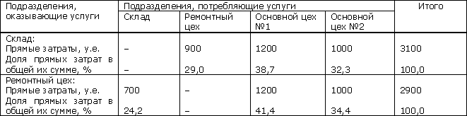 2). Рассчитываем затраты непроизводственных подразделений, скорректированные с учетом двухстороннего потребления услуг. Для этого составим систему уравнений: