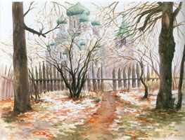 “Сегодня Среда – мы опять собирались в Церковь, но опять такой снег выпал и у нас, а главное, в самом Торонто, что звонили оттуда, что непролазно… Мы в полосе невероятного невезения… Гуляла я по глубокому снегу. Не знаю, как удастся вылезти завтра, но хотим попробовать. Редко рисую, но хочется, и то приятно…”