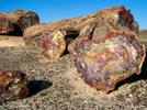 220 миллионов лет назад здесь жили динозавры и росли гигантские, высотой более 30 метров деревья, в поперечнике достигавшие двух метров. Одни из них погибали от старости, другие - от болезней, пожаров и наводнений. Бурные потоки уносили погибшие деревья в низину, где они скапливались в огромном количестве. Их постепенно засыпало песком, илом и вулканическим пеплом. Лишенные доступа воздуха, деревья начинали видоизменяться: кварц, входящий в состав вулканического пепла, проникал вместе с водой в древесину и там кристаллизовывался, точно повторяя структуру бревен. Они могли так и остаться навечно под землей, если бы не мощные подвижки земной коры, произошедшие около 65 миллионов лет назад. Вода ушла, а кристаллизовавшиеся остатки хвойного леса были вынесены на поверхность. Постепенно дожди и ветры уничтожили покрывающие окаменелые деревья осадочные породы, глинистый сланец и песчаник и Окаменелый лес увидел свет.