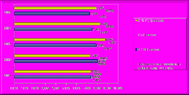 В целом за период с 2000 по 2005 гг. доля обучающихся детей с отклонениями в развитии (или детей со специальными нуждами) в ОУ I-VIII вида по отношению к общей численности обучающихся возрастает (см. рис. 17.). Снижение доли обучающихся в 2004-2006 гг. является незначительной.