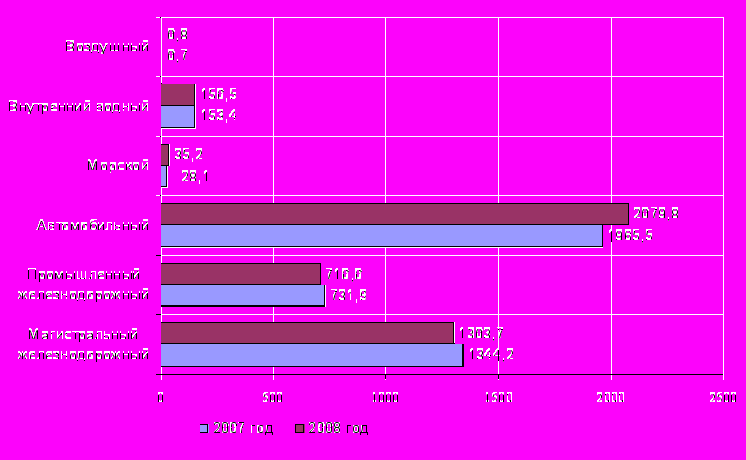 Коммерческий грузооборот, выполненный указанными видами транспорта, составил в 2008 году – 2363,2 млрд. т-км (101,4% к уровню 2007 года), объем коммерческих перевозок грузов – 4280,0 млн. тонн (101,3%).