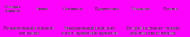 - Иерархическая модель Лавиджа и Стинера тесно связана с социально-психологической теорией отношений, в соответствии с которой шесть типовых ступеней представлены в соответствии с тремя компонентами отношения.
