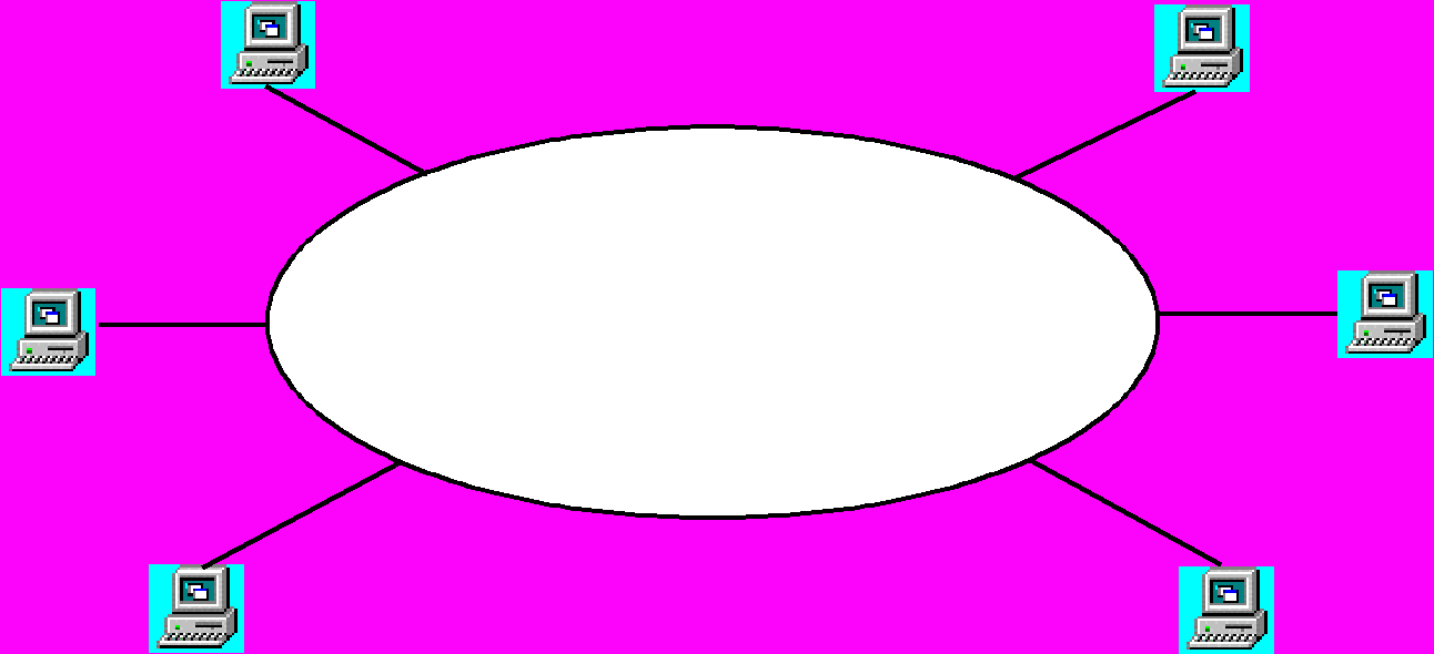 Мережа у вигляді зірки (рис. 1) містить центральний вузол комутації (ВК – мережевий хаб, мережевий сервер), до якого посилаються всі повідомлення з вузлів (робочих станцій).