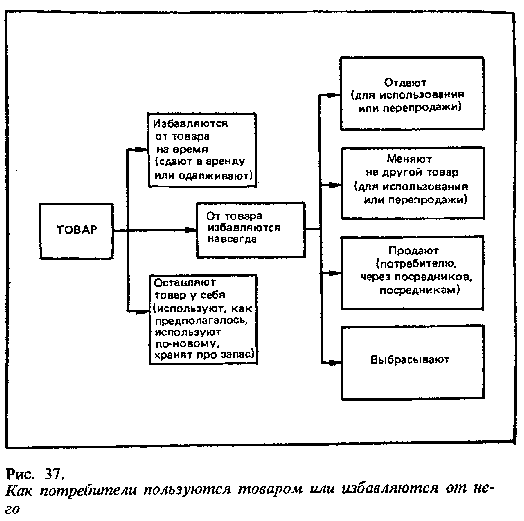КОНЕЧНАЯ СУДЬБА КУПЛЕННОГО ТОВАРА. В поведении покупателя после покупки деятеля рынка должен интересовать еще один шаг, а именно: что потребитель в конце концов сделает с его товаром? Основные направления возможных действий представлены на рис. 37.