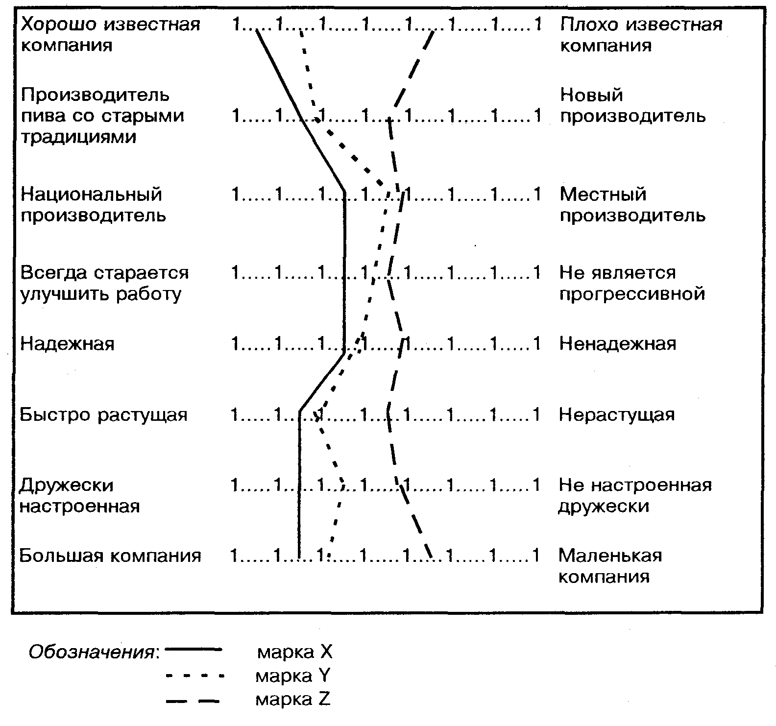 Может изучаться не только имидж компании, но параллельно также — и профиль опрошенных потребителей. На рис. 6.4 и 6.5 приводятся результаты таких исследований для трех марок пива, полученные с помощью метода семантической дифференциации.