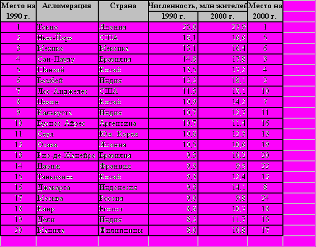 Крупнейшие агломерации мира в 1990 и 2000 гг.