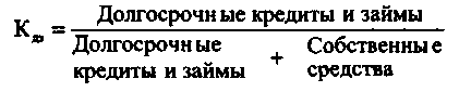 2. Коэффициент долгосрочного привлечения заемных средств (К да), оценивающий зависимость предприятия от долгосрочных займов, рассчитывается следующим образом
