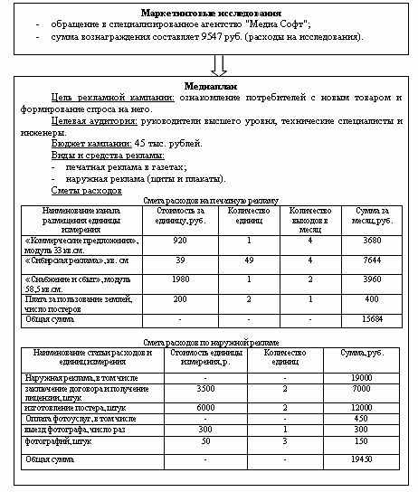 - план-смета по каждому рекламоносителю и общий бюджет медиаплана;