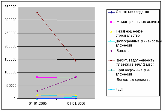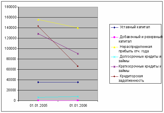 Представим на рисунке 2.3 долю показателей в активах и пассивах. ![]() Рис. 2.3. Структура активов и пассивов баланса ООО «Шанс» Оборотные активы характеризуются уменьшением в валюте баланса с 79,3% на 1.01.2005 до 69,5% на 1.01.2006 года. Среди оборотных активов занимает наибольший удельный вес дебиторская задолженность, платежи о которой ожидаются в течение 12 месяцев, а именно 69,8% на 1.01.2005 года, затем происходит ее снижение на 27,3% и она составляет 42,5%. Скорее всего, предприятие ведет неудовлетворительную работу по возврату задолженности покупателей за отгруженную им продукцию. Во всяком случае, анализ структуры текущих активов дает основание предположить, что в течение предыдущих периодов услуги оказывались неплатежеспособным клиентам. На протяжении всего исследуемого периода предприятие располагает низким объемом денежных средств - не более 0,3% от общей суммы активов. Данный факт негативно отразился на таком показателе, как абсолютная ликвидность компании. Доля постоянных активов в общей стоимости имущества компании претерпела значительные изменения с 20,7% до 30,5. Подобное соотношение внеоборотных и текущих активов характерно для производственных предприятий, где высока значимость основных производственных фондов. Этот же вывод подтверждает анализ структуры постоянных активов. Здесь львиную долю занимают основные средства, на них приходится примерно 17,4% всей части имущества. Лишь к началу 2006 году были произведены долгосрочные финансовые вложения 1,6% от валюты баланса. Анализ структуры пассивов показывает, что компания практически на 40,8% осуществляет деятельность за счет собственных средств. Однако за рассматриваемый период доля собственных источников финансирования незначительно снизилась с 40,8% в начале и 51,8 % в конце 2005 года, однако в целом произошло уменьшение данного раздела баланса в суммовом выражении. Рост доли обусловлен значительным снижением объемов кредиторской задолженности у предприятия. Эта тенденция является отрицательной и негативно сказывается на финансовой устойчивости фирмы. Снижение доли кредиторской задолженности с 30,5% до 19,4% на 1.01.2005 и 1.01.2006 года соответственно, свидетельствует о формировании предприятием пассива баланса в основном за счет замов и кредитов. В течение анализируемого периода доля привлеченных долгосрочных источников финансирования была незначительной (1, 4% и 2,2% на 1.01.2005 и 1.01.2006 года соответственно). 27,4% в текущих пассивах занимает статья краткосрочные кредиты, и на 1.01.2006 года величина снижается и составляет 26,5%. Структура собственного капитала предприятия претерпела незначительные изменения. Так, доля уставного капитала выросла с 7,6% до 10,5% и произошло это за счет уменьшения накопленного капитала по статье "нераспределенная прибыль прошлых лет". Снижение накопленного капитала является негативной характеристикой деятельности предприятия. Удельный вес собственного капитала характеризует предприятие как финансово устойчивое с точки зрения наличия резерва покрытия задолженности при убытках. | ||||||||||||||||||||||||||||||||||||||||||||||||||||||||||||||||||||||||||||||||||||||||||||||||||||||||||||||||||||||||||||||||||||||||||||||||||||||||||||||||||||||||||||||||||||||||||||||||||||||||||||||||||||||||||||||||||||||||||||||||||||||||||||||||||||||||||||||||||||||||||||||||||||||||||||||||||||||||||||||||||||||||||||||||||||||||||||||||||||||||||||||||||||||||||||||||||||||||||||||||||||||||||||||||