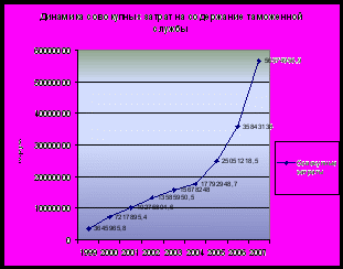 Рис. 6. Динамика совокупных затрат на содержание таможенной службы